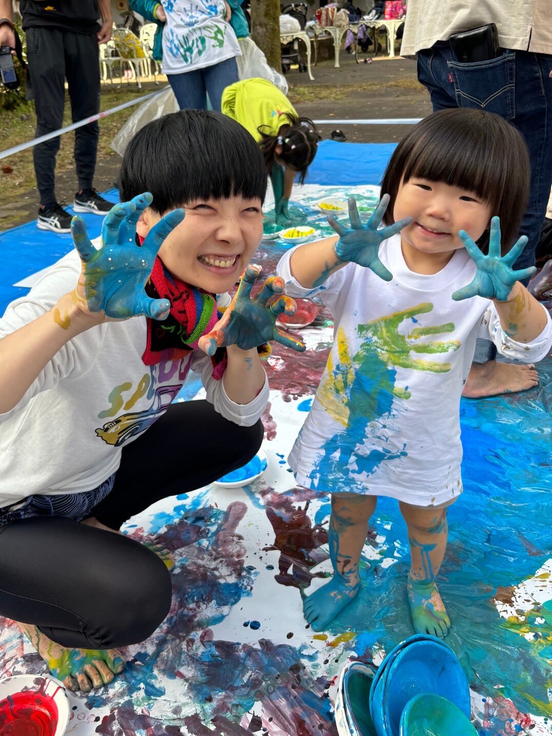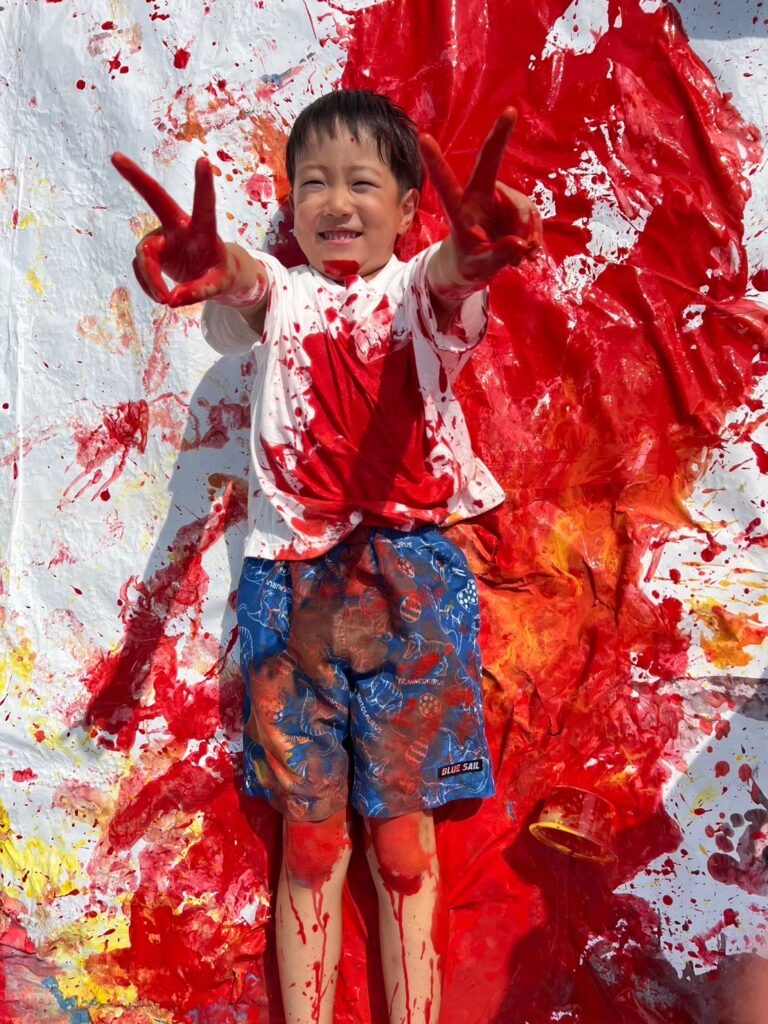 また、半ば無理矢理参加させた夫も、絵の具に触れ、時間が経つにつれ笑顔になっていき、とっても楽しめたようです♡ 「結構楽しかった〜⭐️」と童心に帰ったようです😂